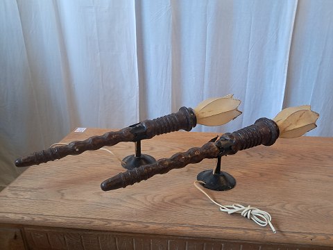 2 Væglamper i massivt egetræ og smedejern, fra 1930erne.