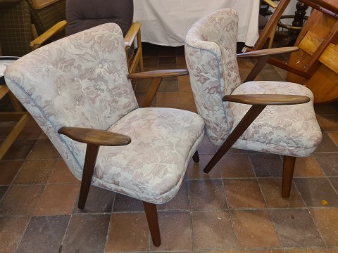 Erhardsen & Andersen par lænestole med stel i teak, betrukket med møbelstof.