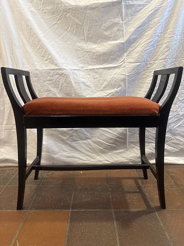 Klaverbænk i sortlakeret træ betrukket m. rødt velour stof.