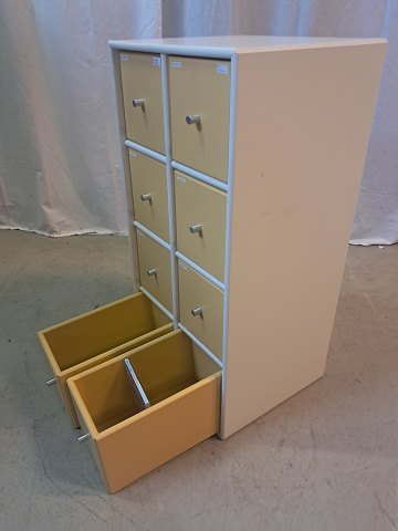 Den har brugsspor og der medfølger ikke ophæng.( skufferne passer til CDér)
