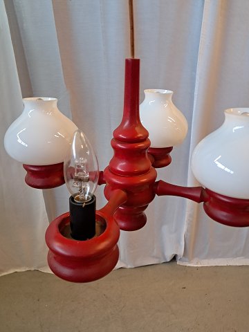 Malet loftlampe med 4 glasskærme, fra 1980erne.