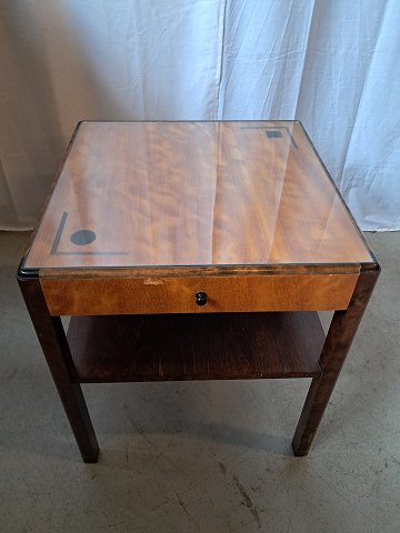 Lampebord i fineret birketræ med glasplade, fra 1930erne.