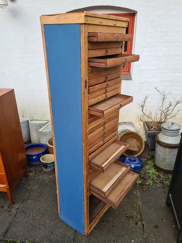 Arkivmøbel med skuffer udført i delvis bemalet fyr.
