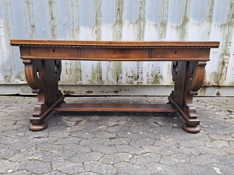 Bord i renaissance stil, af massivt egetræ med fineret bordplade, fra 1930erne.