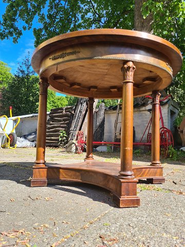 Rundt sofabord fra 1930'erne i birk og nød. Fremstår pænt og velholdt uden nævneværdige brugsspor. Bordet er en del af sofa sættet med nr. 80860.