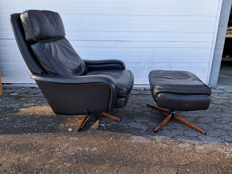 Læder lænestol med fodskammel, fra 1990erne.