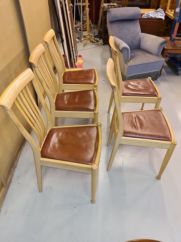 5 nyere spisebords stole i bøgetræ med lædersæde. Fremstår med lettere brugsspor på sæder.