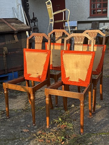 4 Spisestole i massiv egetræ fra ca 1920'erne.