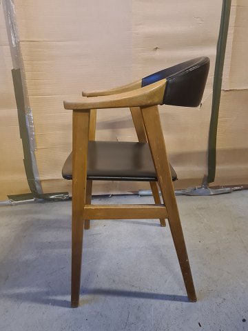 Armstol i massivt bøgetræ med kunstlæder betræk, fra 1960erne.