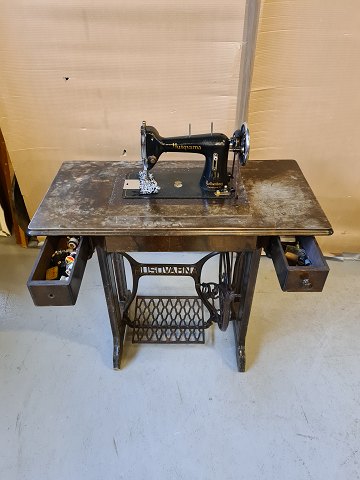 Husqvarna symaskine i ege og birketræ, fra 1910erne.