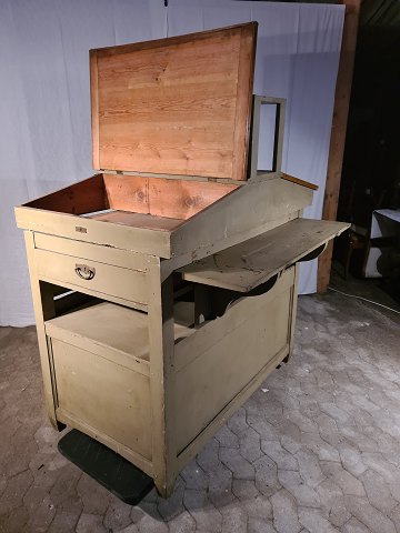 Malet dobbelt skrivepult i massivt fyrretræ, fra 1910-1920erne.