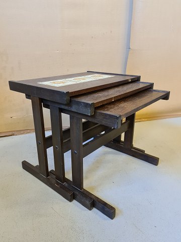 3 indskudsborde i fineret egetræ med kakler fra 1970erne.