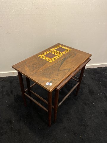 Indskudsborde i palisander og med kakler på det største. Fremstår pæne og velholdte uden nævneværdige brugsspor. OBS sættet består af 2 borde.