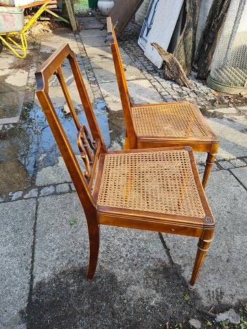 2 stole i birk med sæde i rørflet. Svensk produceret i 1930'erne. Fremstår pæne, velholdte og udmærket stabile med få brugsspor for alderen.