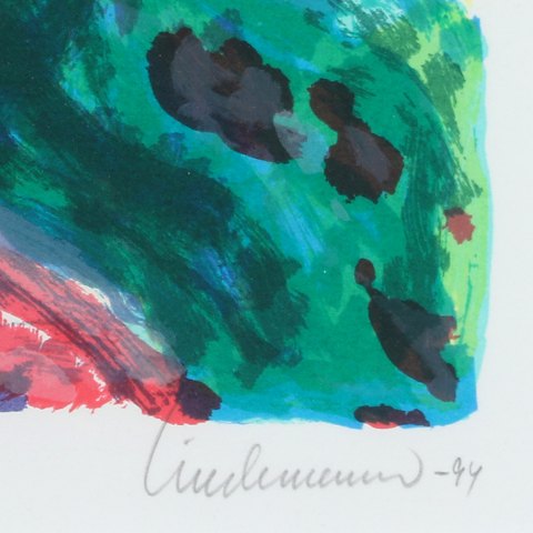 Kai Lindemann (f. 1931 d. 2007) litografi i farver signeret med blyant Lindemann 1994 nr. 203/250 rammemål højde 72 cm, bredde 56,5 cm