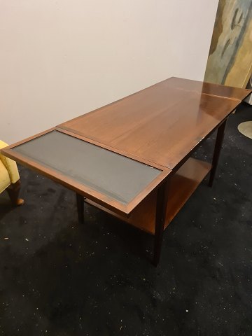 Dansk møbelproducent sofabord m. hollandsk udtræk. Udført i fineret og lakeret palisander, ene udtræksplade m. sort formica. Produceret ca. 1960'erne.