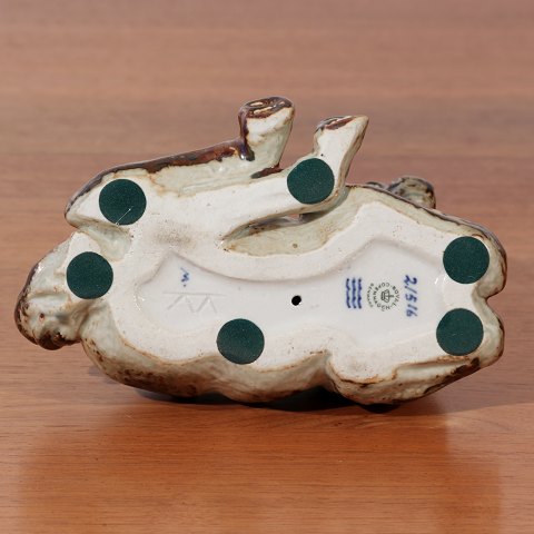 Knud Kyhn (f.1880-d.1969) figur af liggende føl i stentøj glaseret med Sung glasur. Lavet hos Den kgl. Porceænsfabrik mellem 1974-1978.
