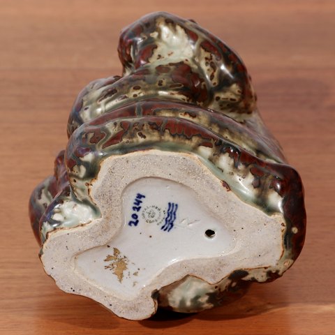 Knud Kyhn (f.1880-d.1969) figur af dreng med løveunge i stentøj glaseret med Sung glasur. Lavet hos Den kgl. Porceænsfabrik mellem 1969-1973.