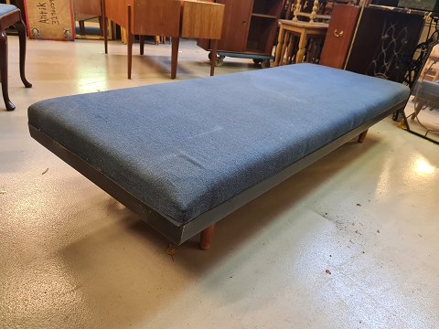 Blå daybed i bøgetræ og sort nappa fra 1960´erne. Medfølgende røde ryglæn er løst.