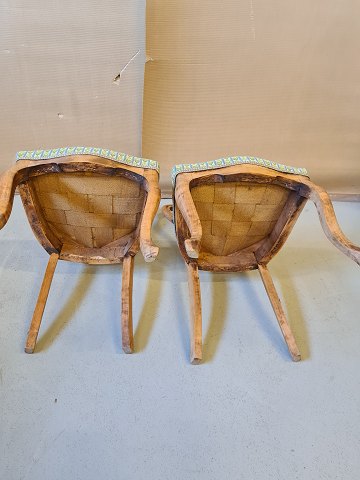 2 Salonstole i mahogni og bøgetræ fra 1900erne.