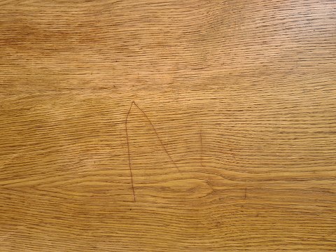 Pæn brugt stand, fremstår med ridser og mærker samt brændmærke i plade.