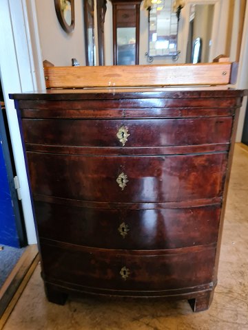 Kommode med buet front i fineeret mahogni, fra 1900erne.