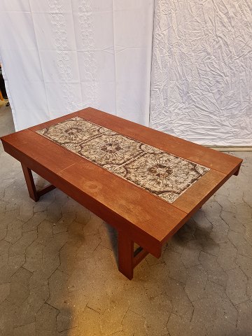 Sofabord i fineret og bejdset egetræ med kakler, fra 1970erne.