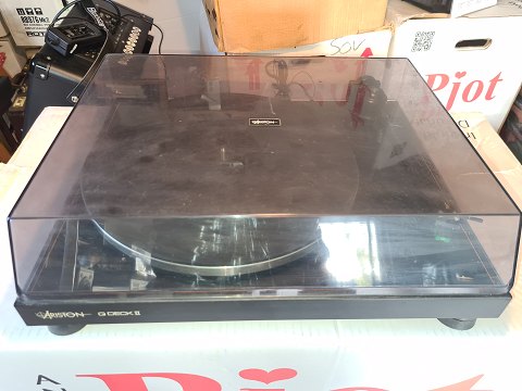 Ariston pladespiller model Q Deck II med ortofon pick´up. Testet og virker. Strømforsyning medfølger, men har brug for en TTPSU hvis den skal køre andet end 33 rpm. Lettere overflade ridset på cover.