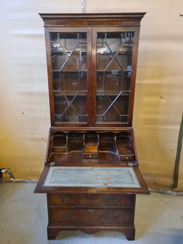 Chatol i fineret mahogni med vitrine overdel, fra 1980erne.