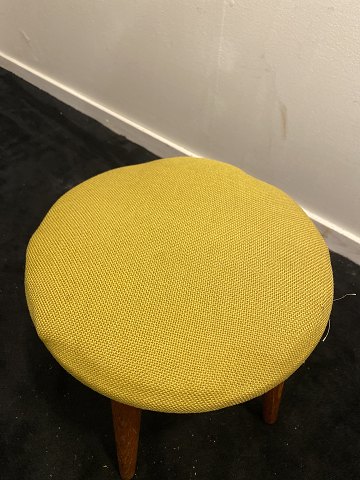 Polstret taburet på ben af teak. Fremstår pæn og velholdt uden nævneværdigee brugsspor.