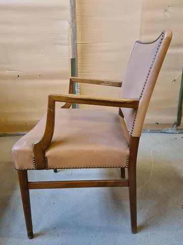 Armstol i bøgetræ med læderbetræk, fra 1950erne.