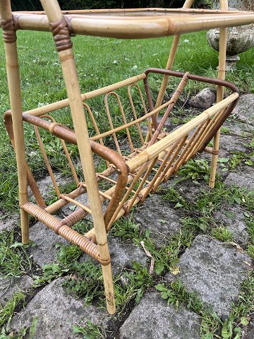 Sidebord med magasinholder i bambus med glasplade.