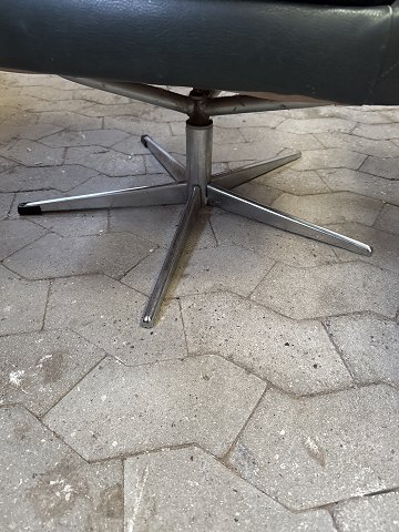 Højrykket lænestol polstret i grøn læder med drejefod af metal.