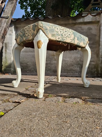 Hvidmalet taburet fra 1940'erne I rokoko stil og med polstret sæde. Fremstår pæn, velholdt og udmærket stabil.