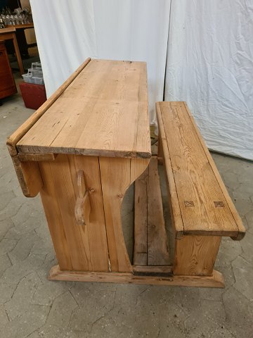 Gammelt skolebord i massivt fyrretræ, fra 1910erne.