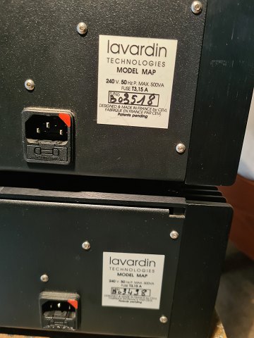 Forstærkersæt fra franske Lavardin Technologies bestående af 2 stk. mono effektforstærkere model MAP og forforstærker model C 62. Sættet er brugt sammen og omkring 10 år gammelt. Virker som det skal. Dog synes en anelse knasen når volumen opereres. Medføger strømførende kabler og originalt emballage til den ene MAP og C 62. |