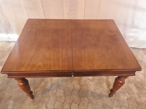 Spisebord i mahogni og bøgetræ med 2 tillægsplader, fra 1900erne.