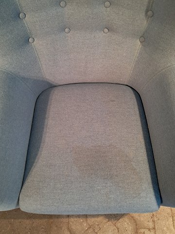 Lænestol med fodskammel i stofbetræk, fra 2010erne.