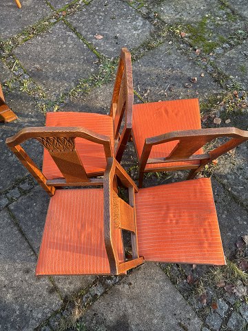 4 Spisestole i massiv egetræ fra ca 1920'erne.