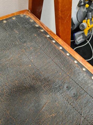 Foldestol model: Trieste udført i rødbejdset træ m. sæde i sømbeslået