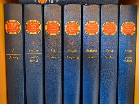 Den Store Danske encyklopædi, med skab designet af Tom Stepp.