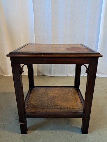 Lampebord i fineret mahogni med læder indlæg, fra 1980erne.