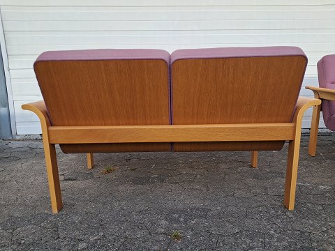 Sofa og en stol i egetræ og en stol i bøgetræ.