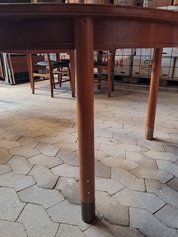 Spisebord i fineret mahogni med 3 tillægsplader, fra 1950erne.