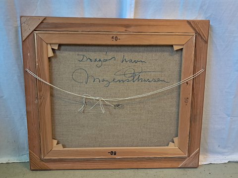 Maleri af Dragør havn i guldmalet ramme, af : Mogens Amdi Thorsen (1924-2016)