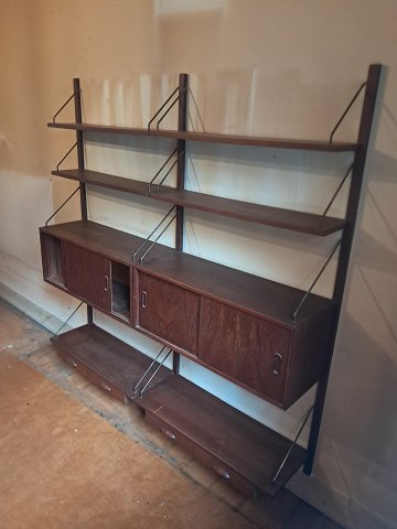 Vangesystems reol i fineret teaktræ, fra 1960erne.