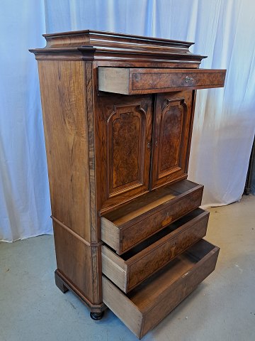 Skab i fineret mahogni og nøderod, fra 1900erne.