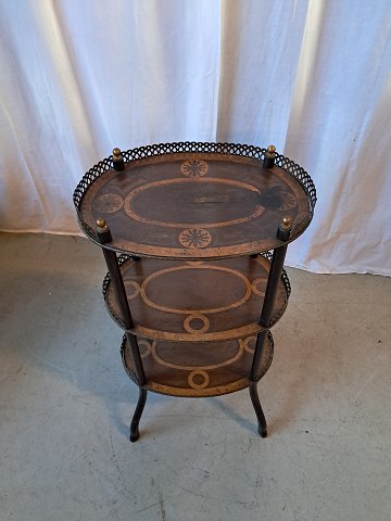 Sidebord i fineret mahogni og nødetræ med metalkant, fra 1980erne.